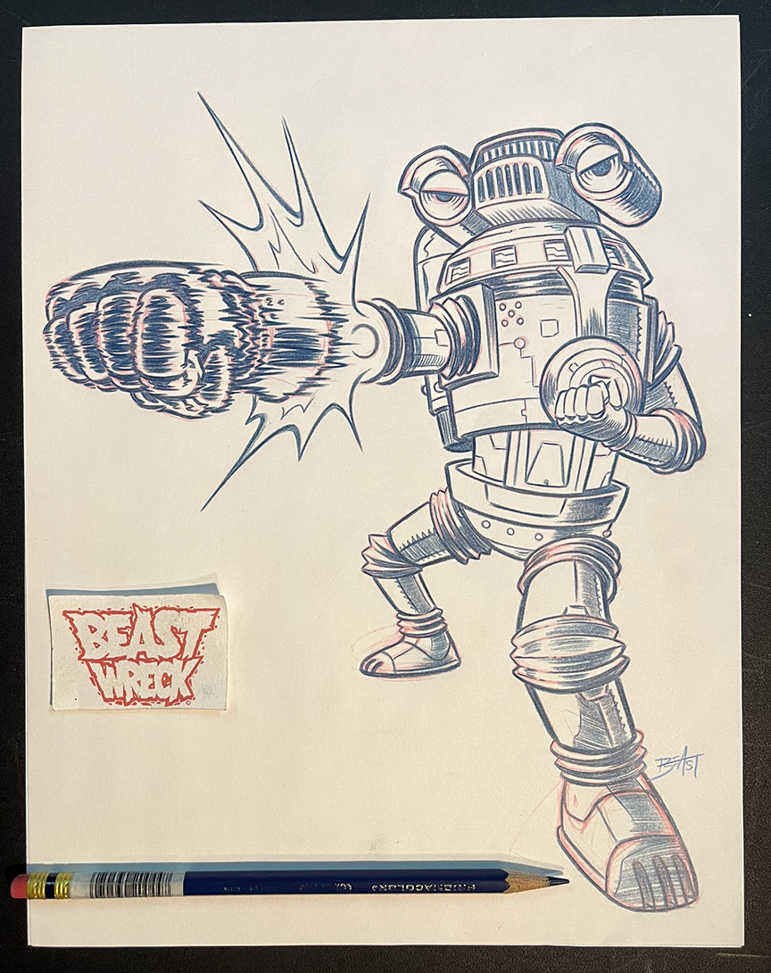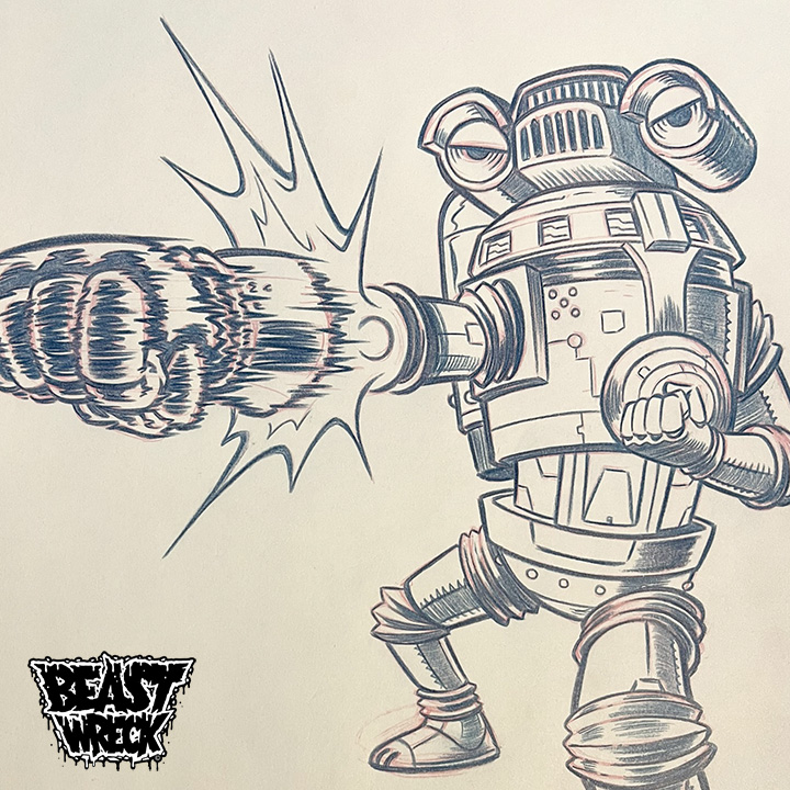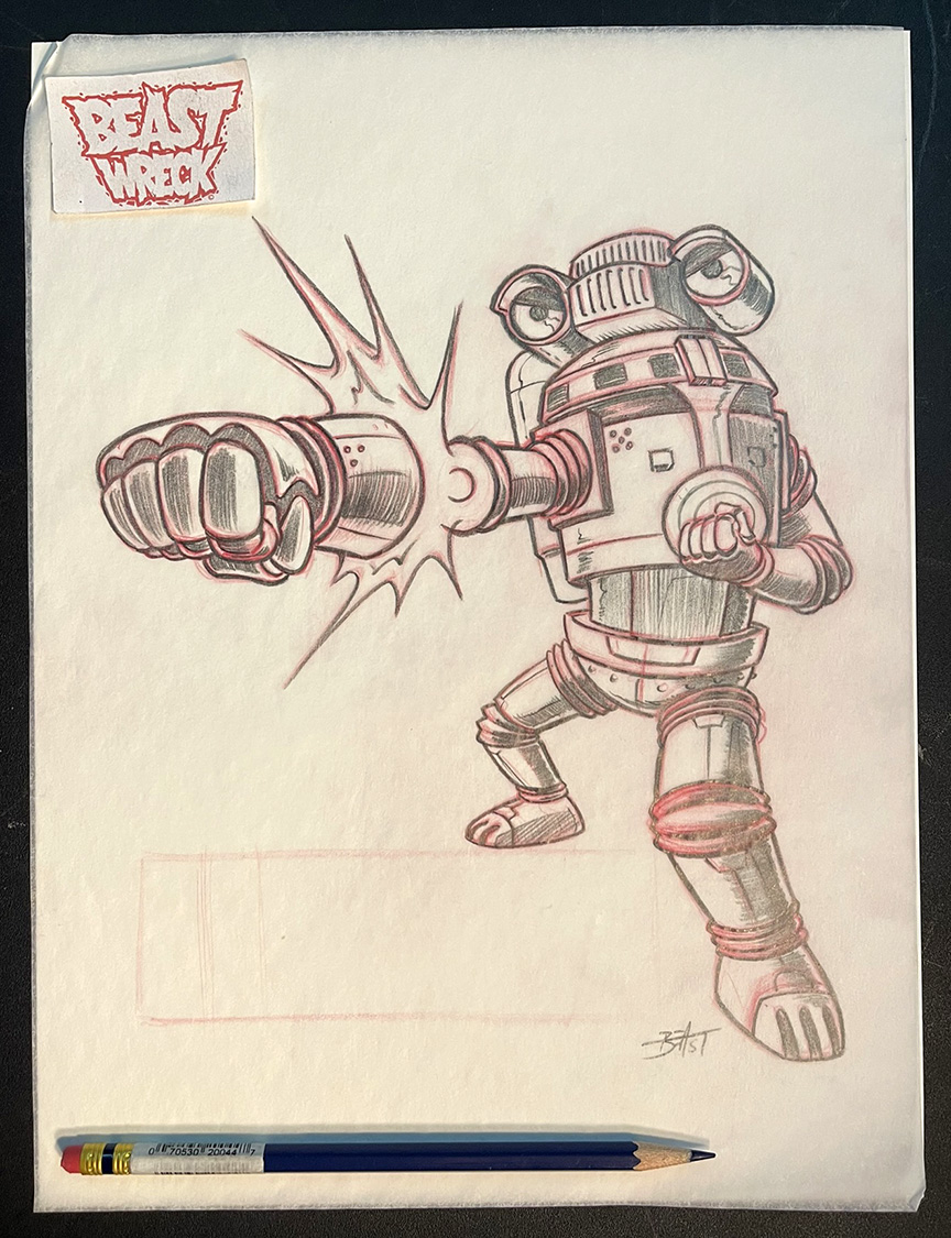 Original pencil artwork by BeastBoy! SEVENGER character rough pencil art OR final pencil art. Done for a set of Ultraman stickers for PLANET-X ASIA from around 2022