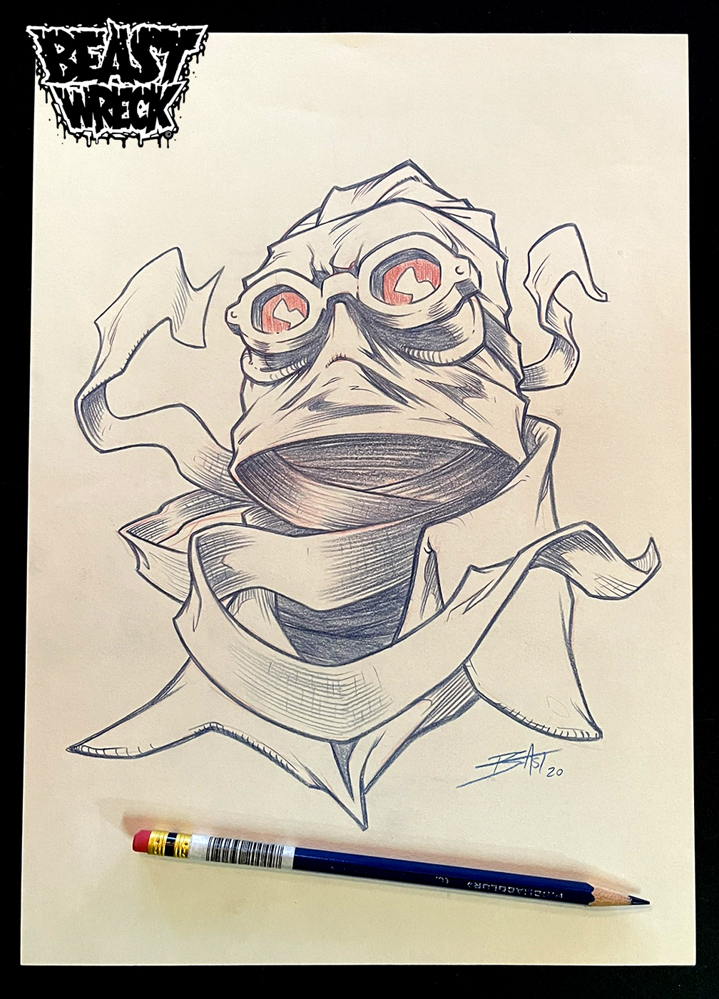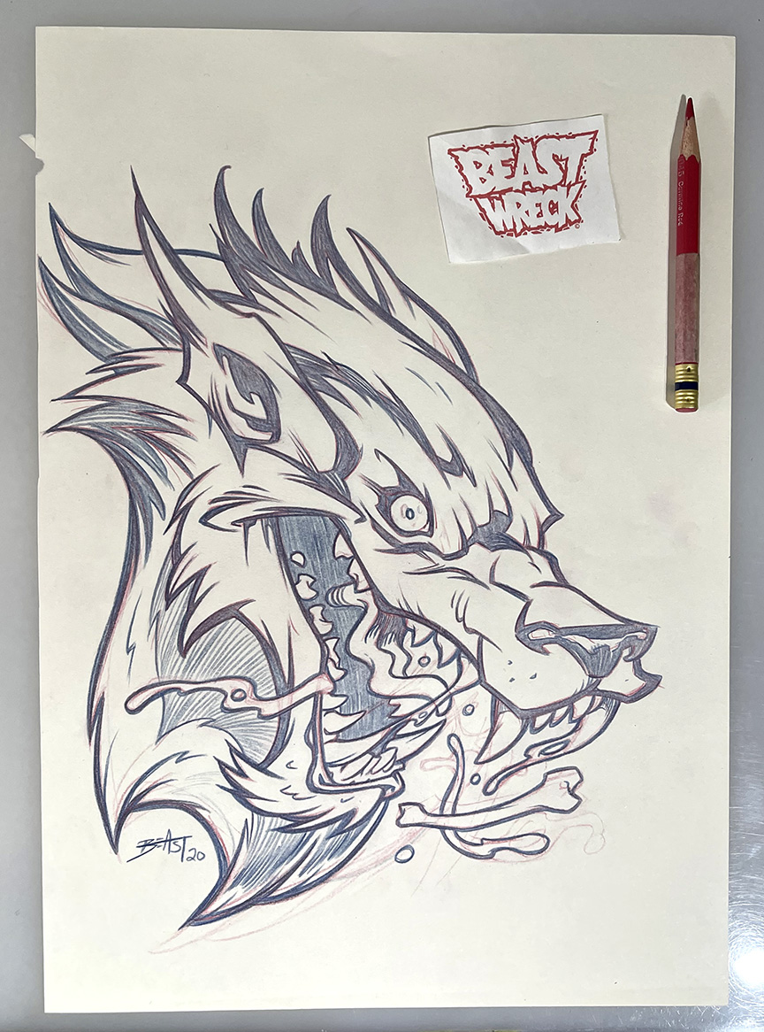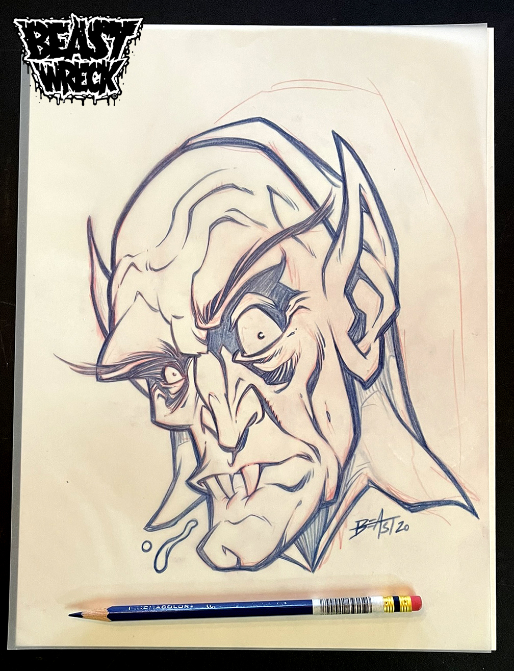 Original pencil drawings done for Beastwrecks set of MONSTER HEADS stickers from 2021