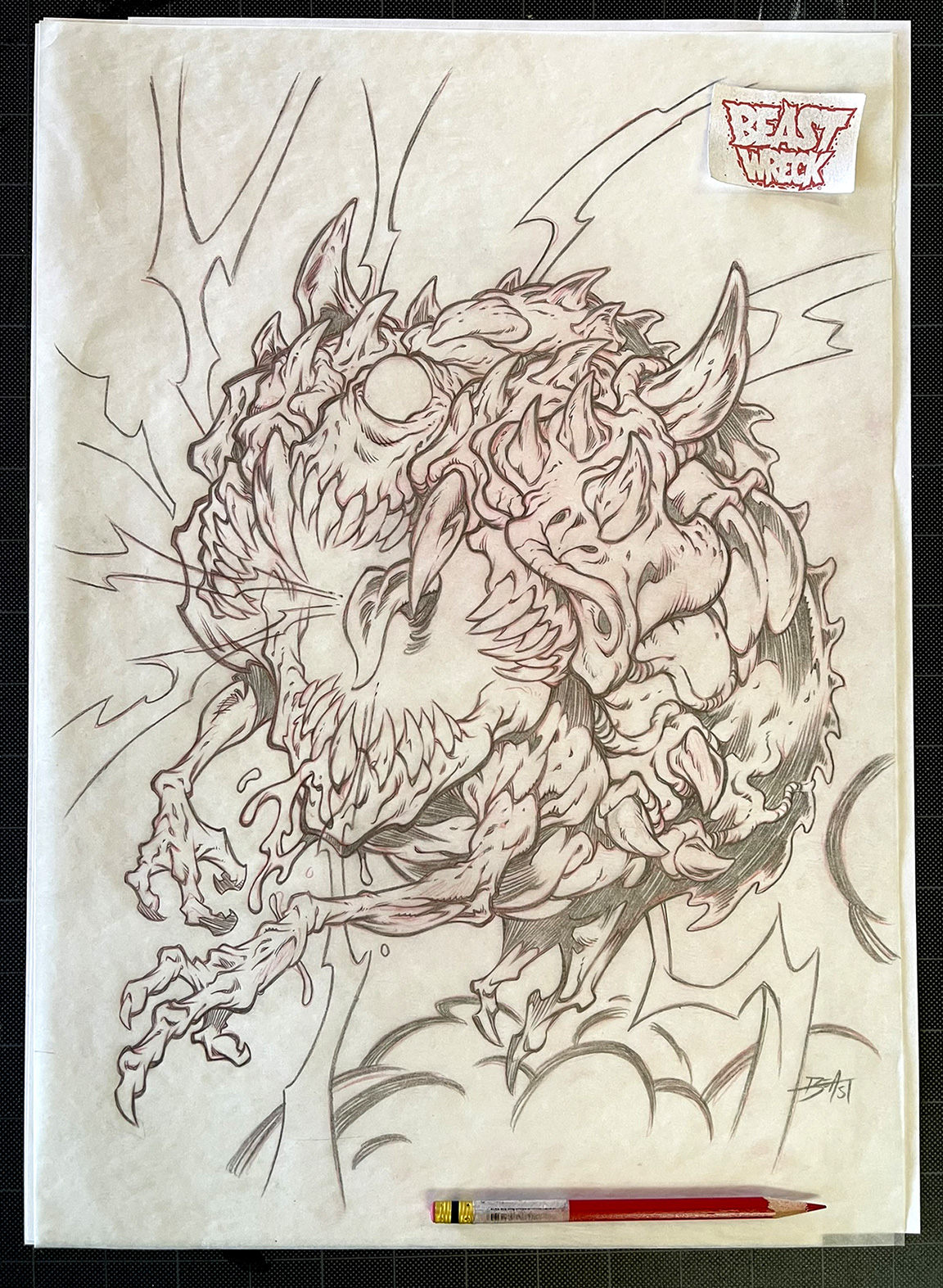 Original pencil artwork by BeastBoy done for an official DOOM: CACODEMON design for a lithograph art print for Dev Plus Merchandising.