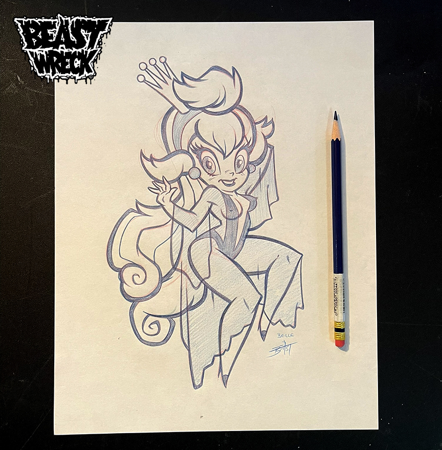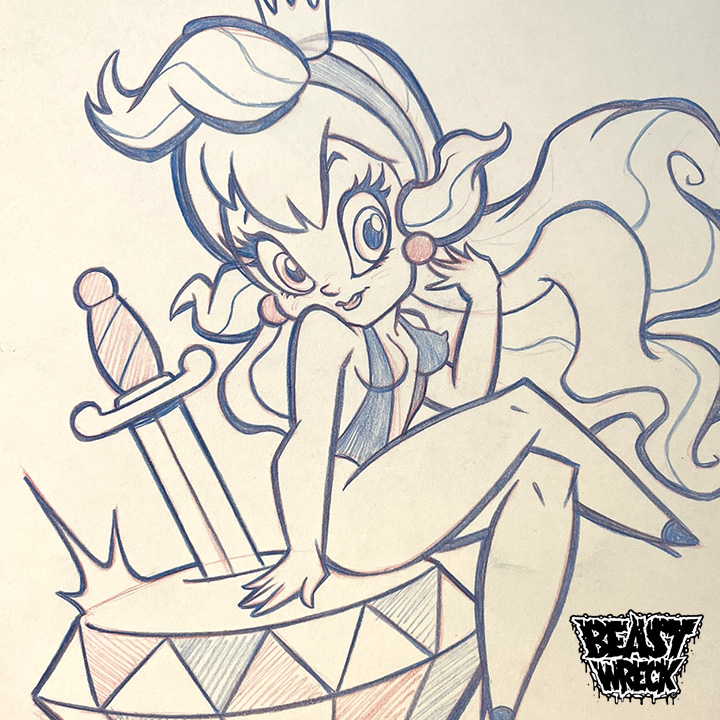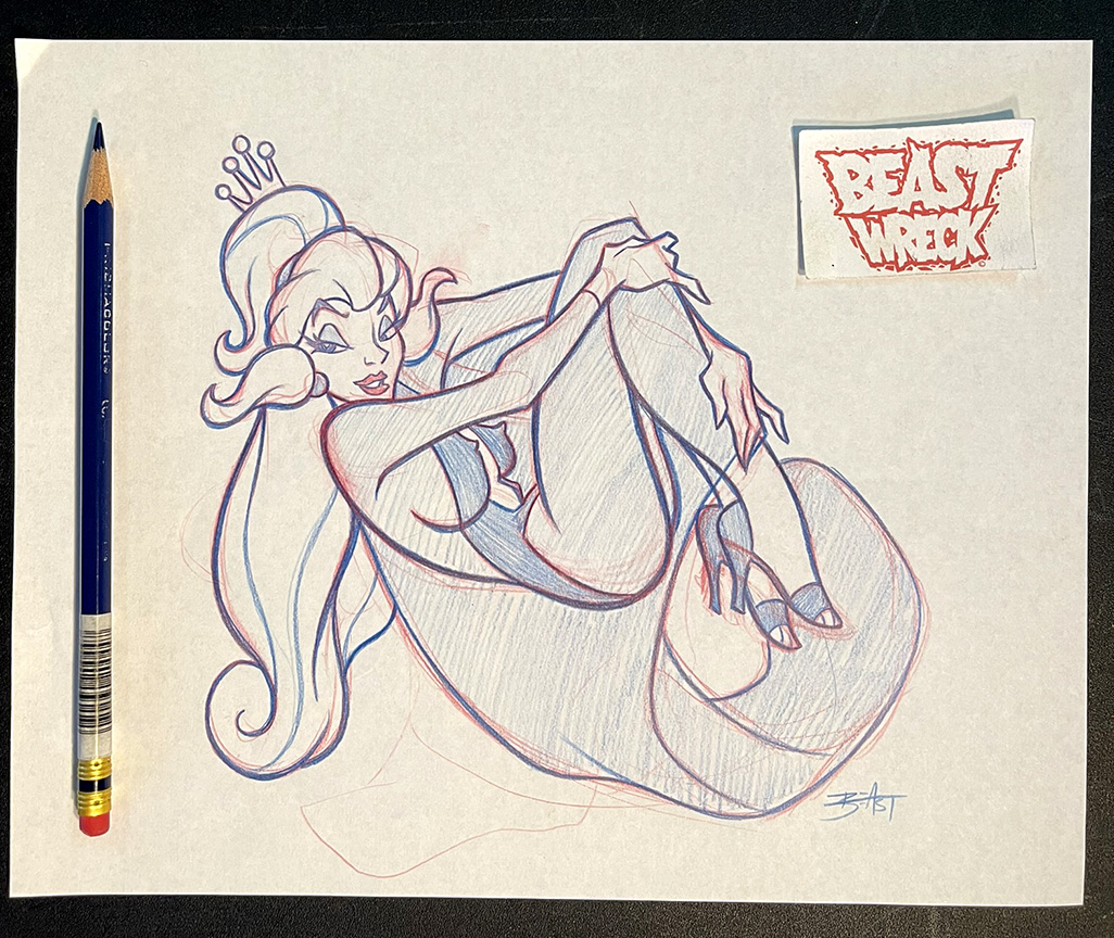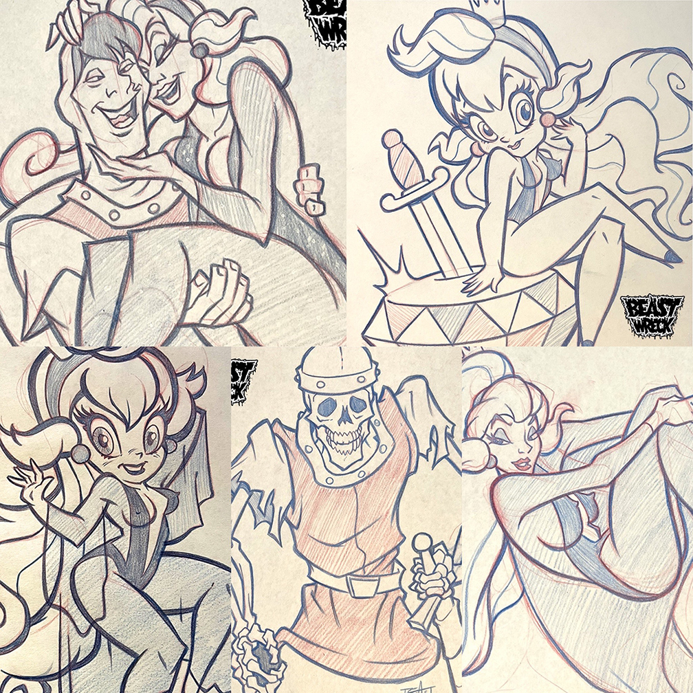 Original pencil drawings done for Beastwrecks set of DRAGON'S LAIR Stickers and Enamel Pins from 2019