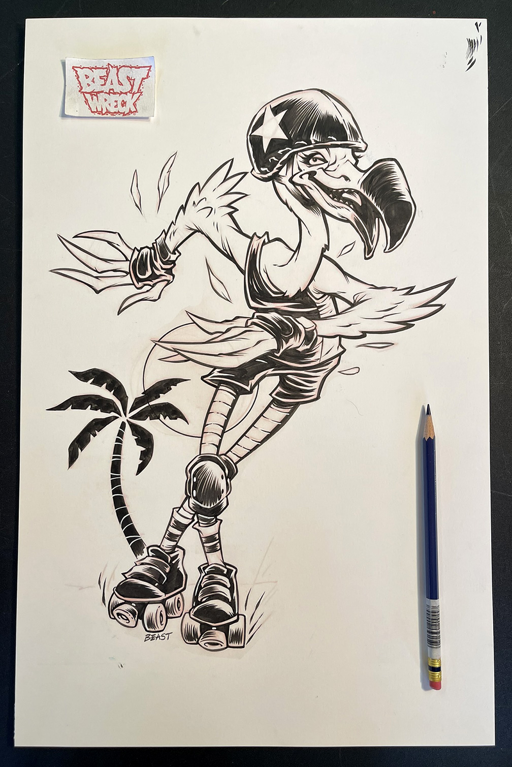 Original ink artwork done as part of a mascot project for the Tampa Bay FL roller derby team in 2012.