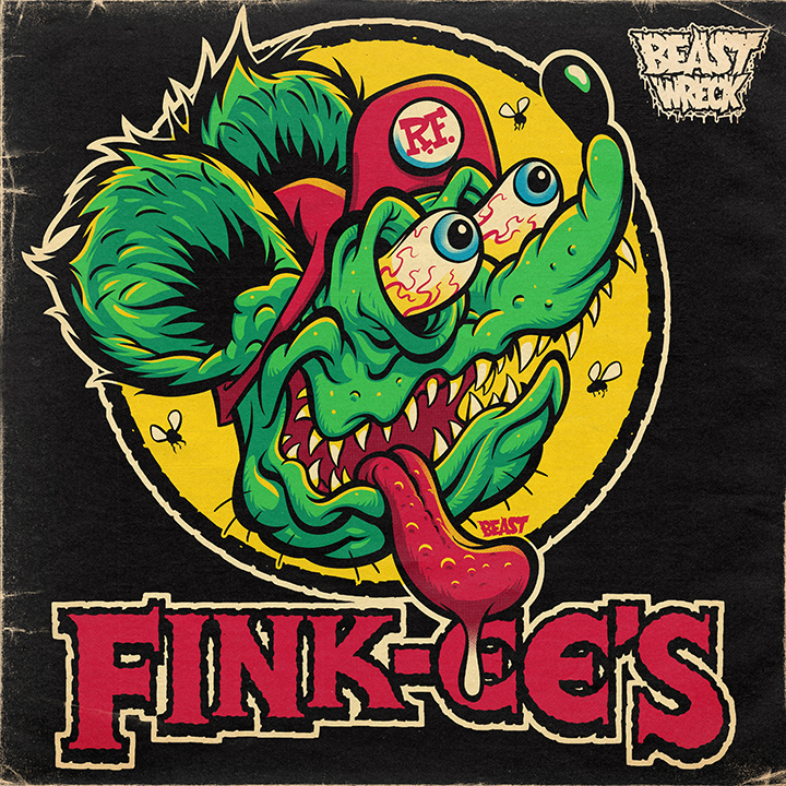Original ink art drawing for a "GAS STATION RAT" BeastWreck T-Shirt design from 2023.