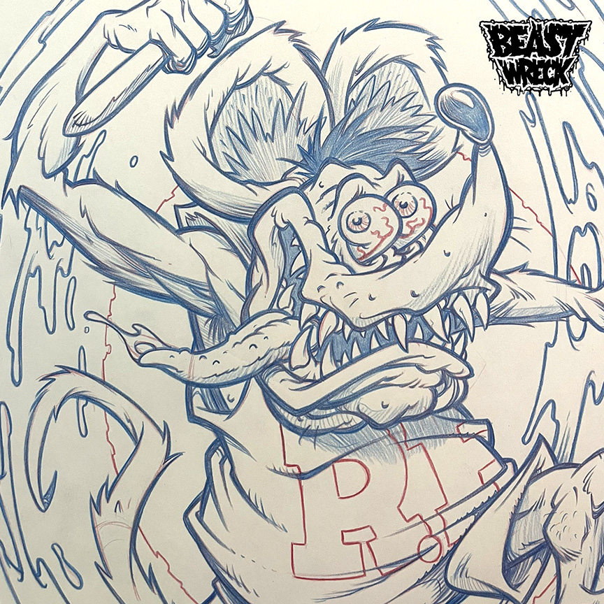 Original pencil artwork by BeastBoy for an official RAT FINK shirt design produced by GNARLY MAGAZINE in 2024