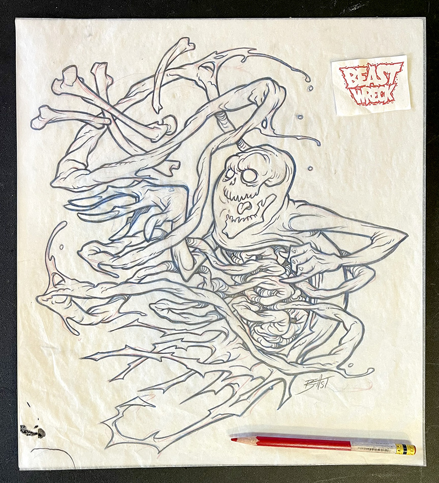 Original PENCIL art drawing for a pinup for the GUTT GHOST comic book from 2021.