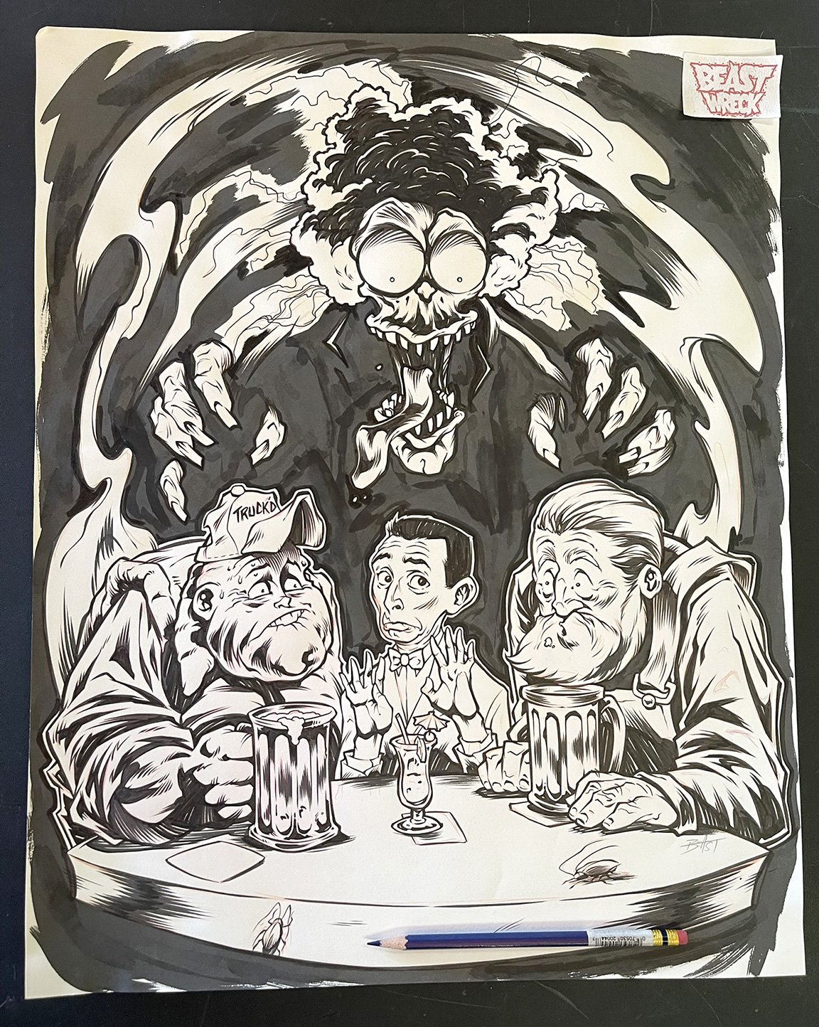 Original final ink artwork for the PEE-WEE'S BIG ADVENTURE t-shirt design illustrated by BeastBoy for Fright-Rags in 2010.