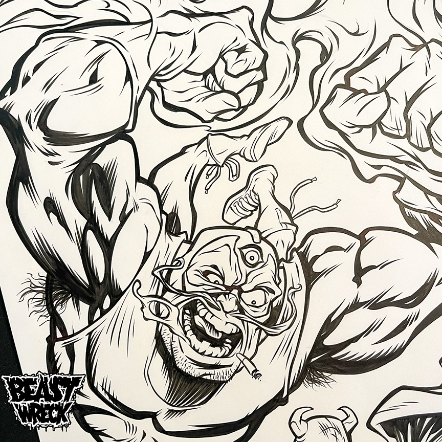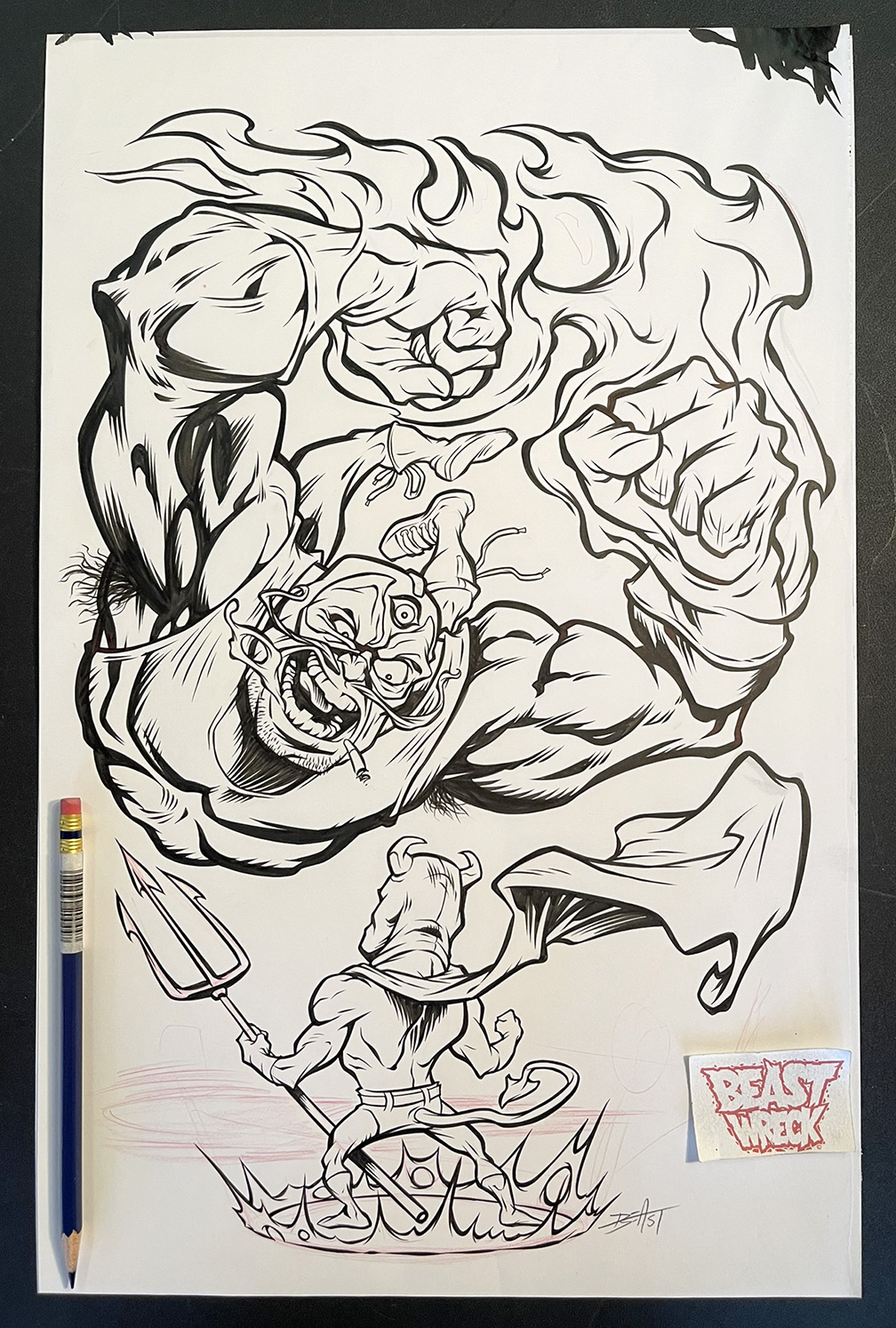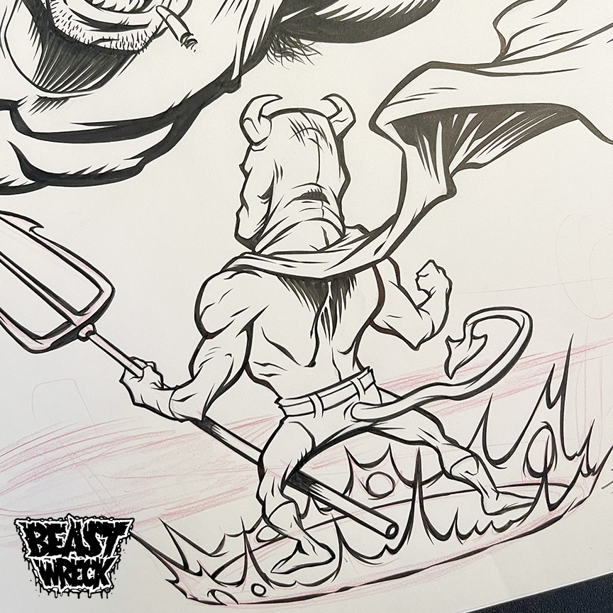 Original ink artwork by BeastBoy! Ink Illustration originally done for a sticker design for a sticker-of-the-month-club in 2009