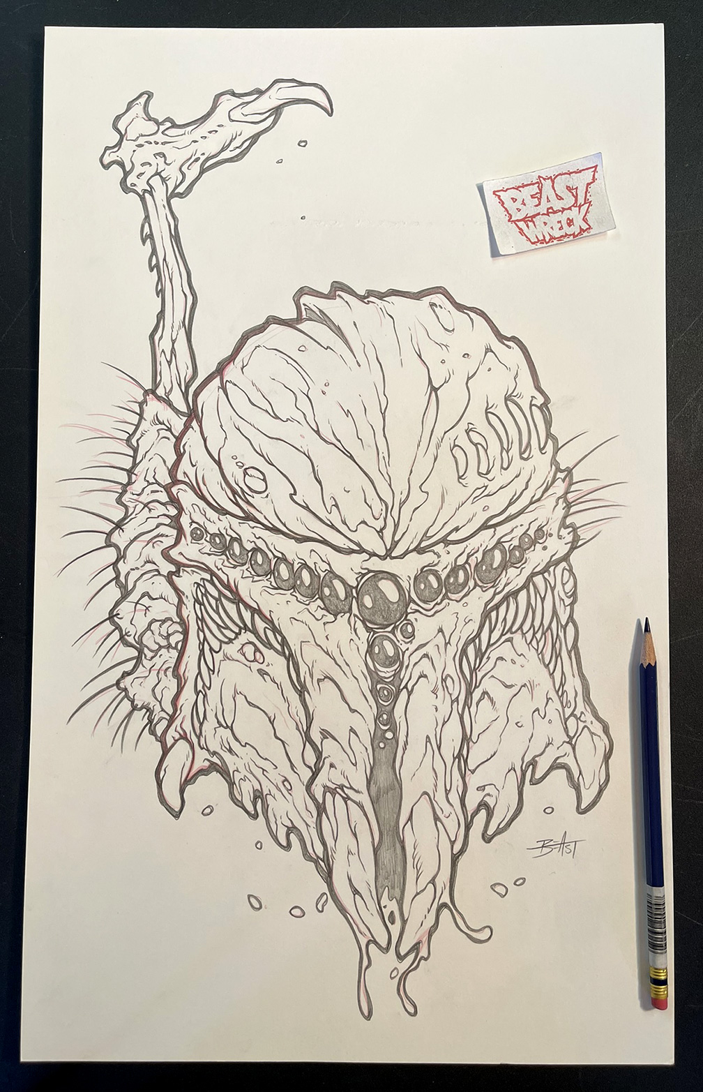 Original pencil artwork by BeastBoy for a series of STAR WARS monster helmet designs for BeastWreck Stuff in 2017.