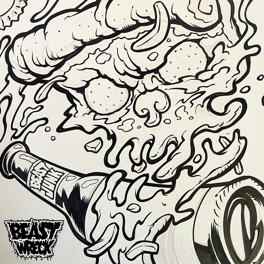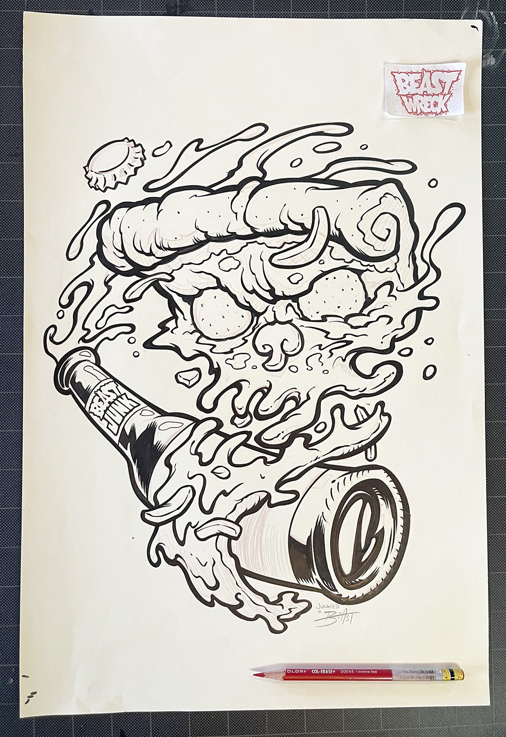 Original ink art drawing for a collaboaration design from 2017 with JunkFed. Concept by JunkFed. Cleanup art and inks by BeastBoy.