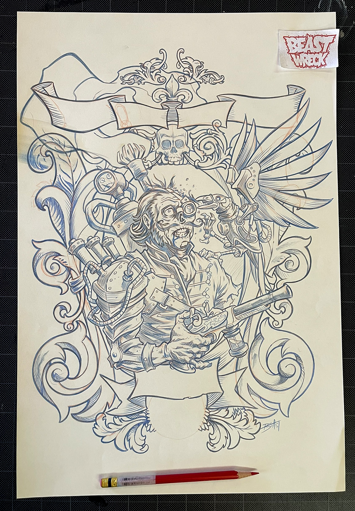 Original PENCIL artwork done as a t-shirt design for J!NX in 2009.