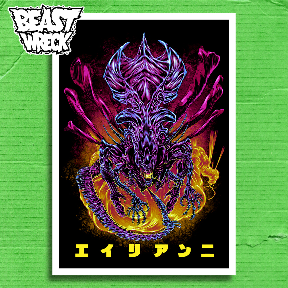 Digital print of my LONG LIVE THE QUEEN Aliens illustration. Available in GREEN, PURPLE or ORANGE color schemes.