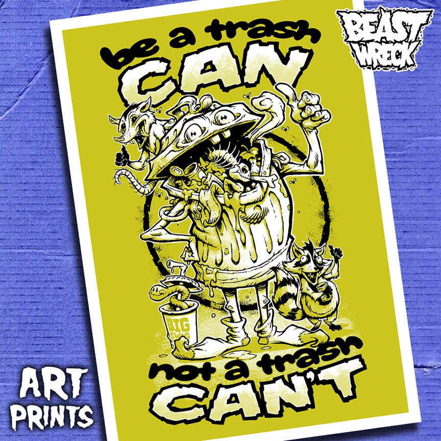 Digital print of the TRASH CAN design by BeastBoy, printed using a Canon Pixma iP8720 large format printer on 13" x 19" or 8.5"x11" Ultra Premium Archival Matte Presentation paper.