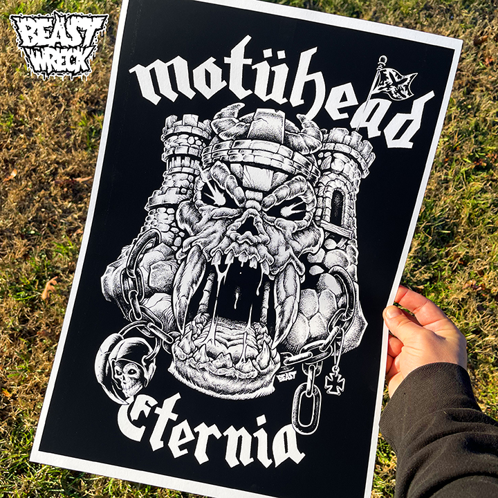 Digital print of BeastBoy's MOTÜHEAD artwork, printed using a Canon Pixma iP8720 large format printer on 13" x 19" Ultra Premium Archival Matte Photo paper.