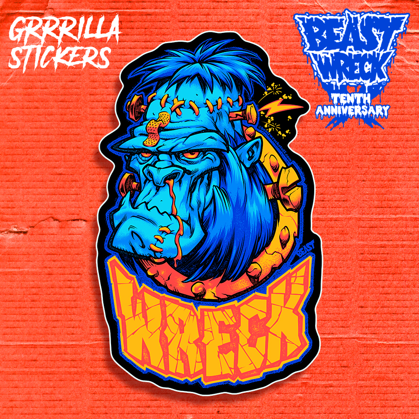 A wild revamped homage to one of BeastWreck's very first designs returns in this new 10th Anniversary version! This bloodied gorilla is bruised but never beaten. It's WRECKIN' TIME!