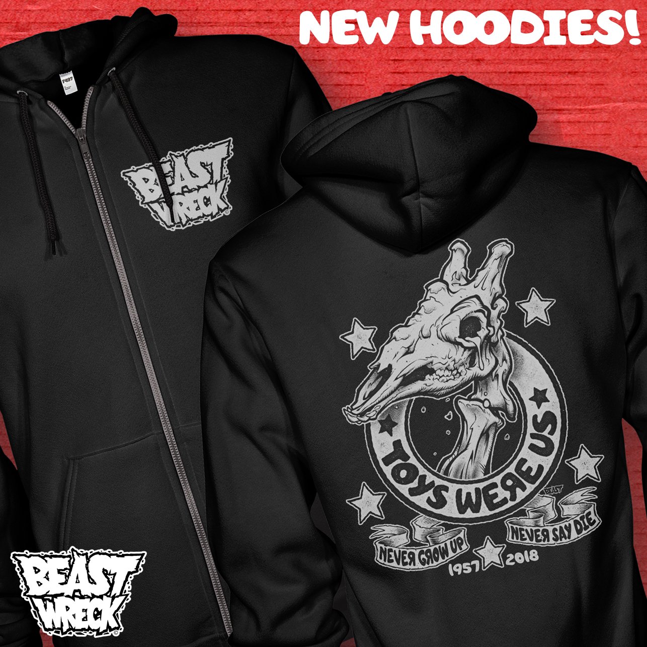 NEW "TOYS WERE US" Lightweight Zip-Up Hoodies with my TWU design on the back and the BeastWreck logo on the front left breast.
