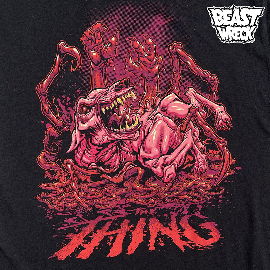 "I don't know what the hell's in there, but it's weird and pissed off, whatever it is." John Carpenter and Rob Bottin's canine nightmare scene captured on a t-shirt.
