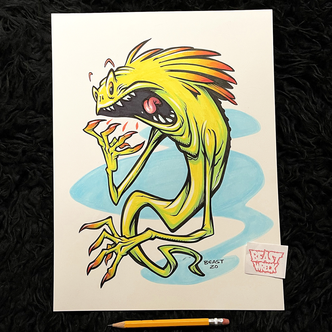 Original pen & marker drawing of the SCREAMING YELLOW ZONKER illustration by BeastBoy on 9" x 12" Strathmore Bristol paper.