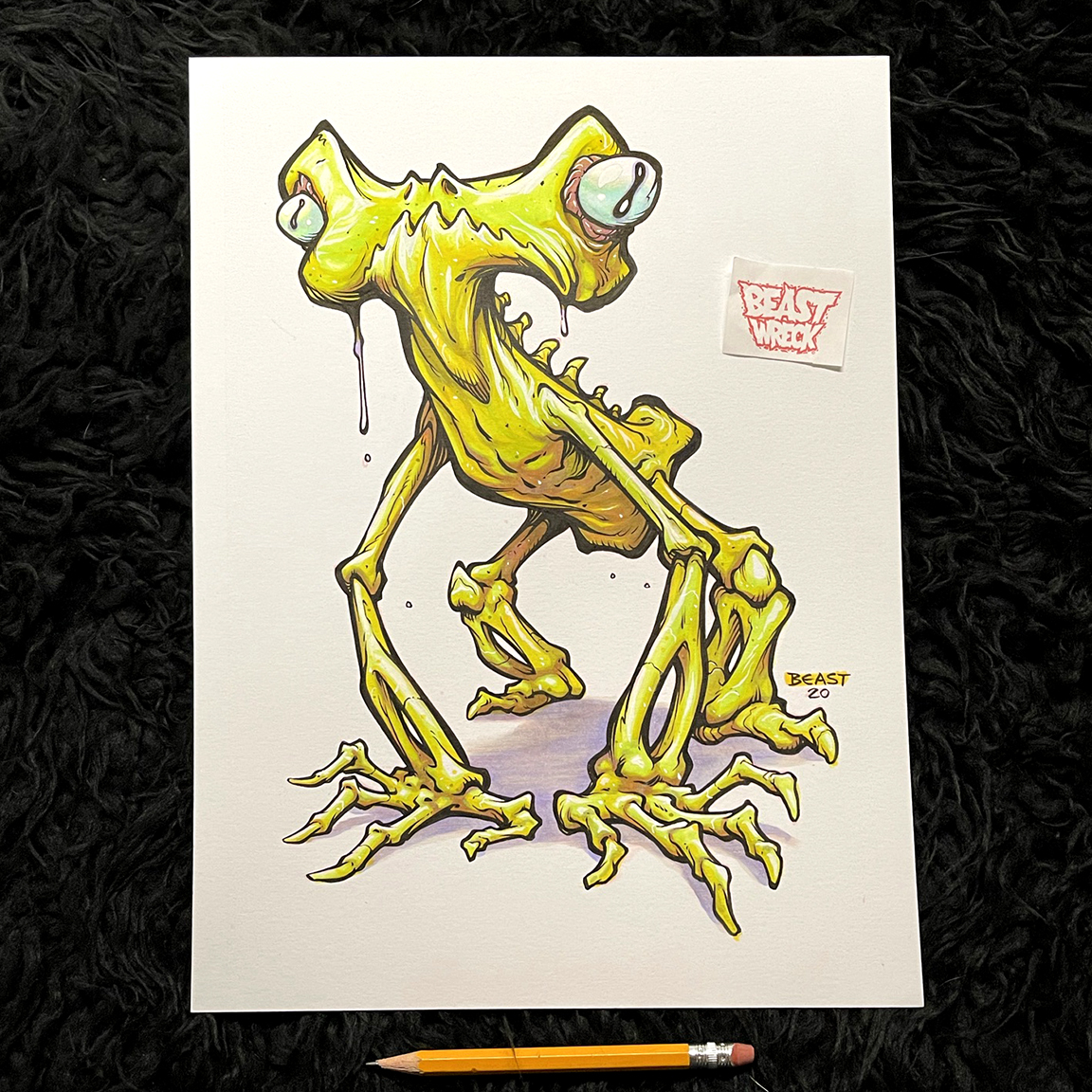 Original pen & marker drawing of the BONE-MONSTER illustration by BeastBoy on 9" x 12" Strathmore Bristol paper.