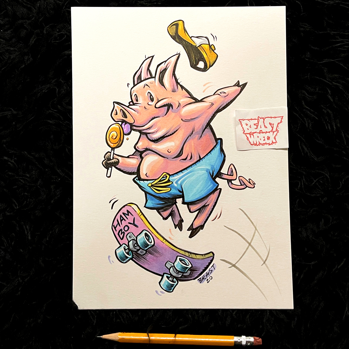 Original pen & marker color drawing of the HAM BOY illustration by BeastBoy on 9" x 6.50" Fabriano Watercolor paper.
