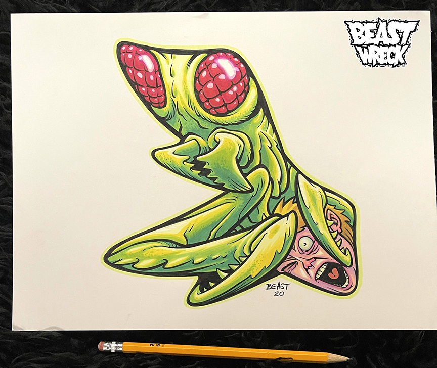 Original pen & marker drawing of the MANTIS Shape Challenge illustration by BeastBoy on 9" x 12" Strathmore Bristol paper.