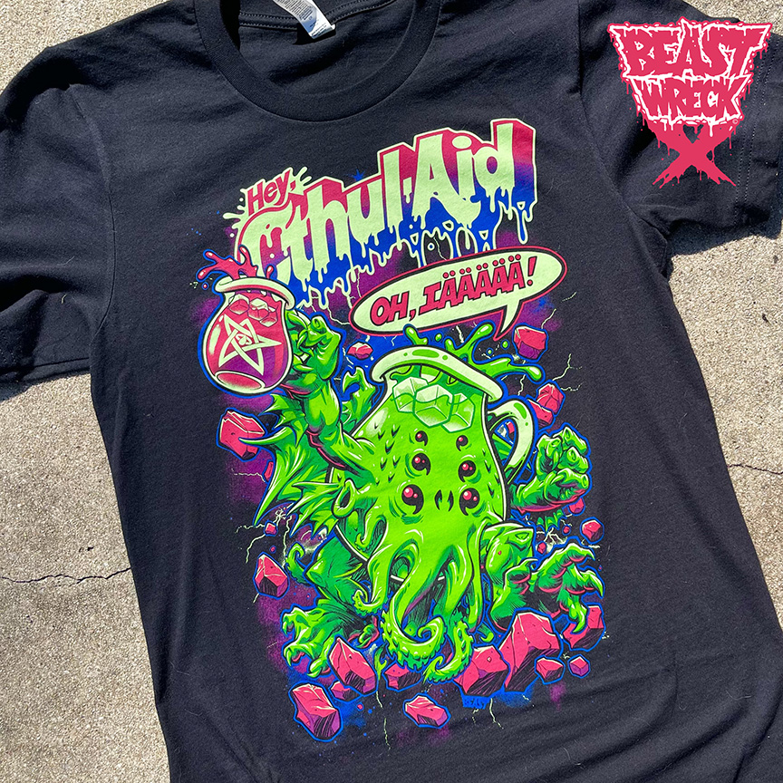 It's the Great Old Ones' favorite beverage, guaranteed to be maddeningly refreshing! Cthulhu himself enjoys kicking back after a hard day's work in R'lyeh and pouring himself a tall cold glass of Cthul-Aid, and so should you!