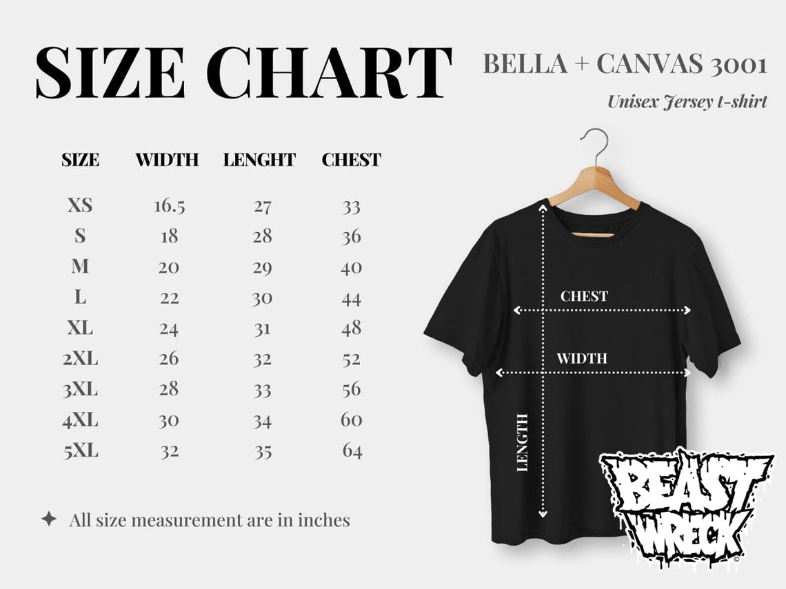 Discharge screenprinted (no thick, sticky inks) 1-color print on BLACK Bella/Canvas unisex 4.3oz 100% Combed Ring-Spun Cotton preshrunk jersey knit t-shirts. (see pictures for size chart).