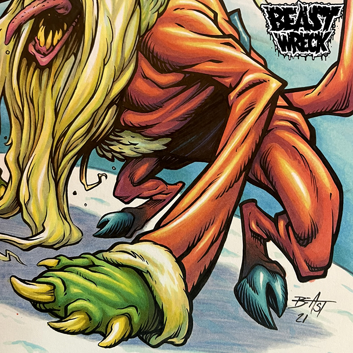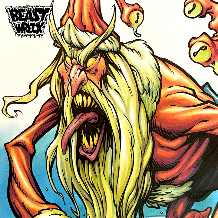 Original pen & marker drawing of the SINNTERKLAWS Monster Santa Claus illustration by BeastBoy!