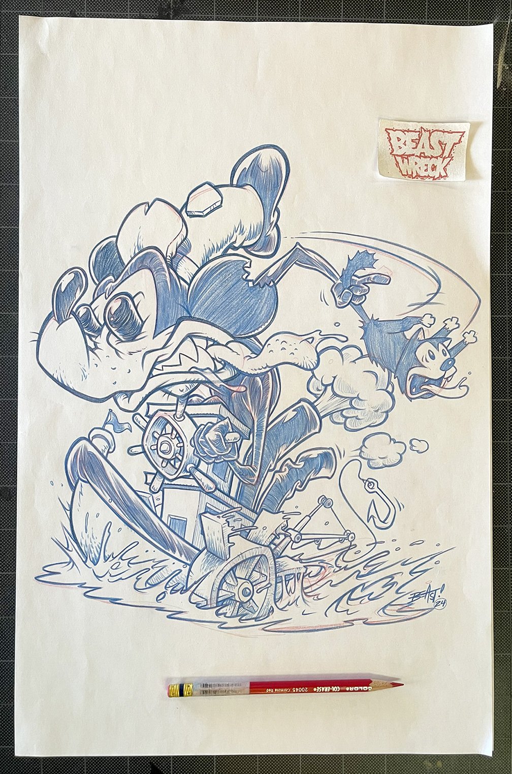 Original FINAL PENCIL DRAWING done in 2023 giving STEAMBOAT WILLIE a Beast-Makeover!