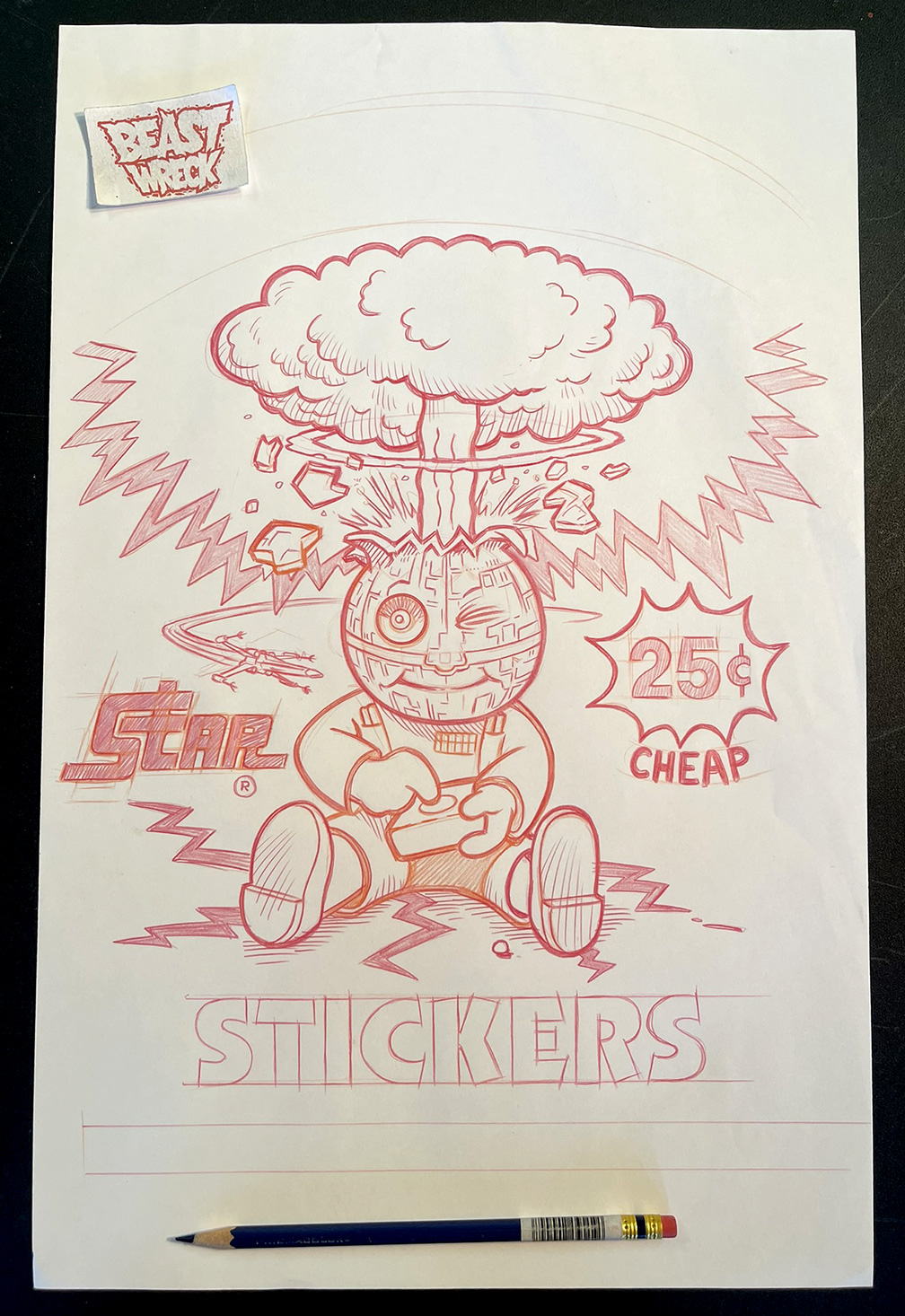 Original pencil artwork for the BeastWreck GARBAGE PAIL KIDS X STAR WARS print design.