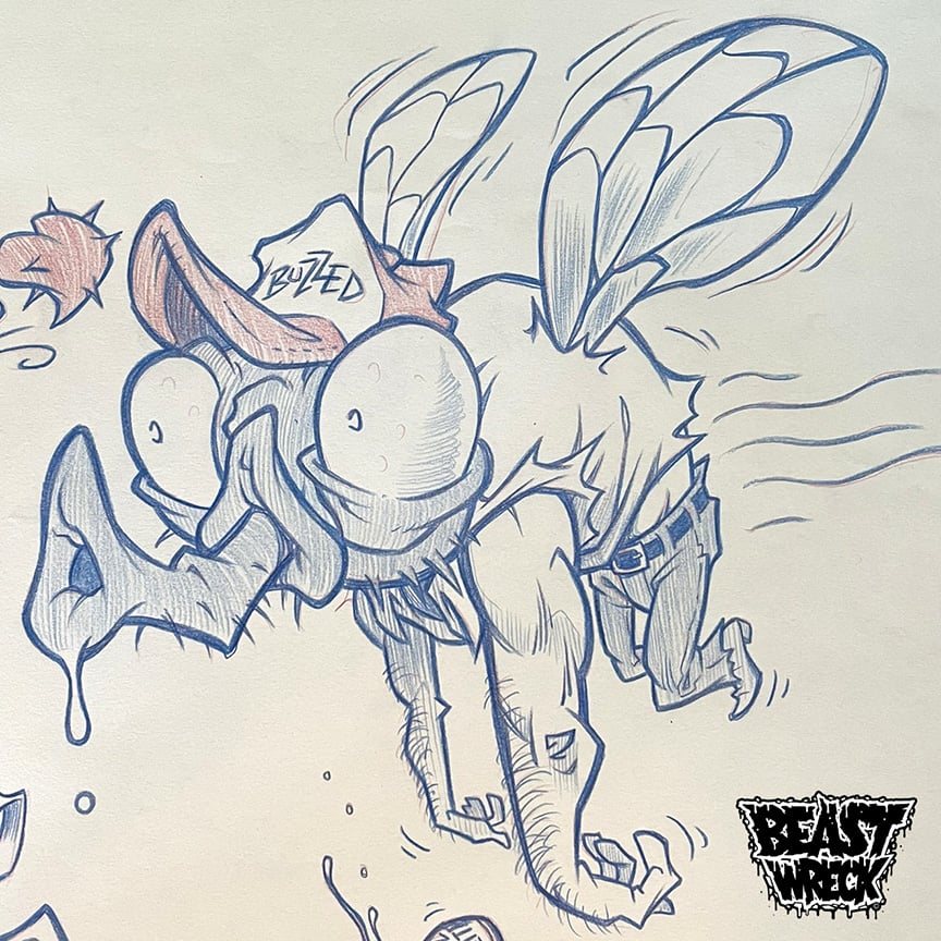 Original final pencil artwork for the BeastWreck sticker design GRIMASS (THICC SHAKE).