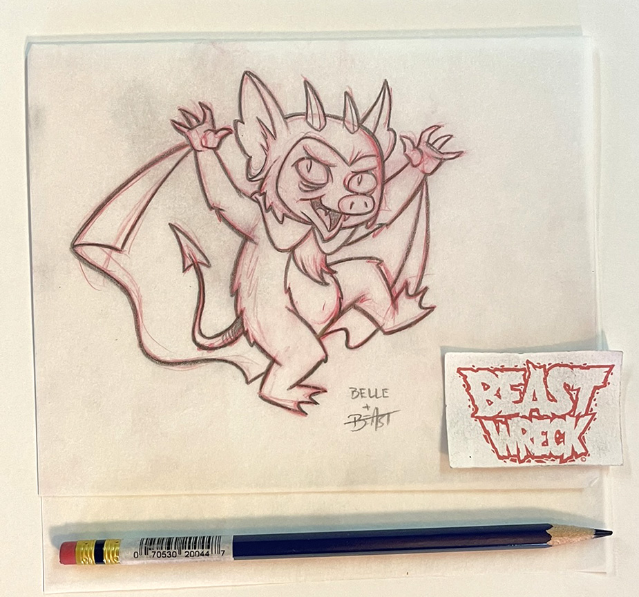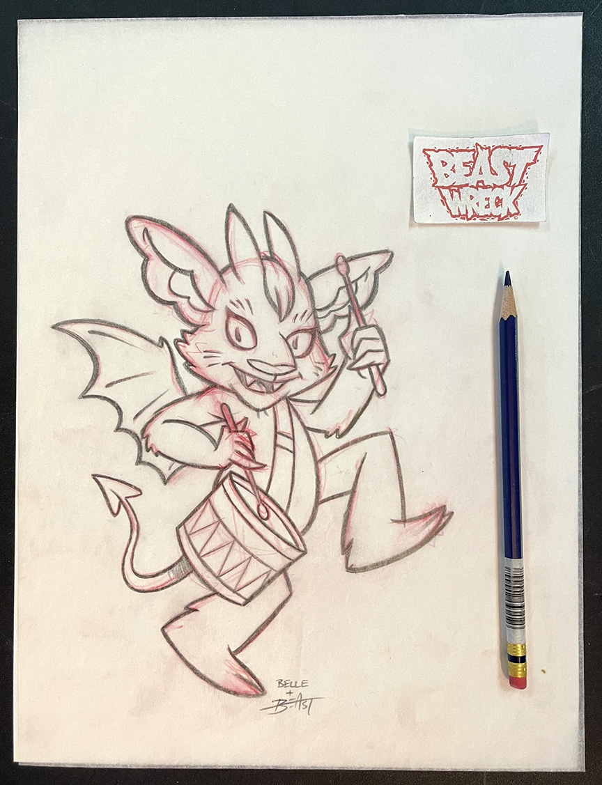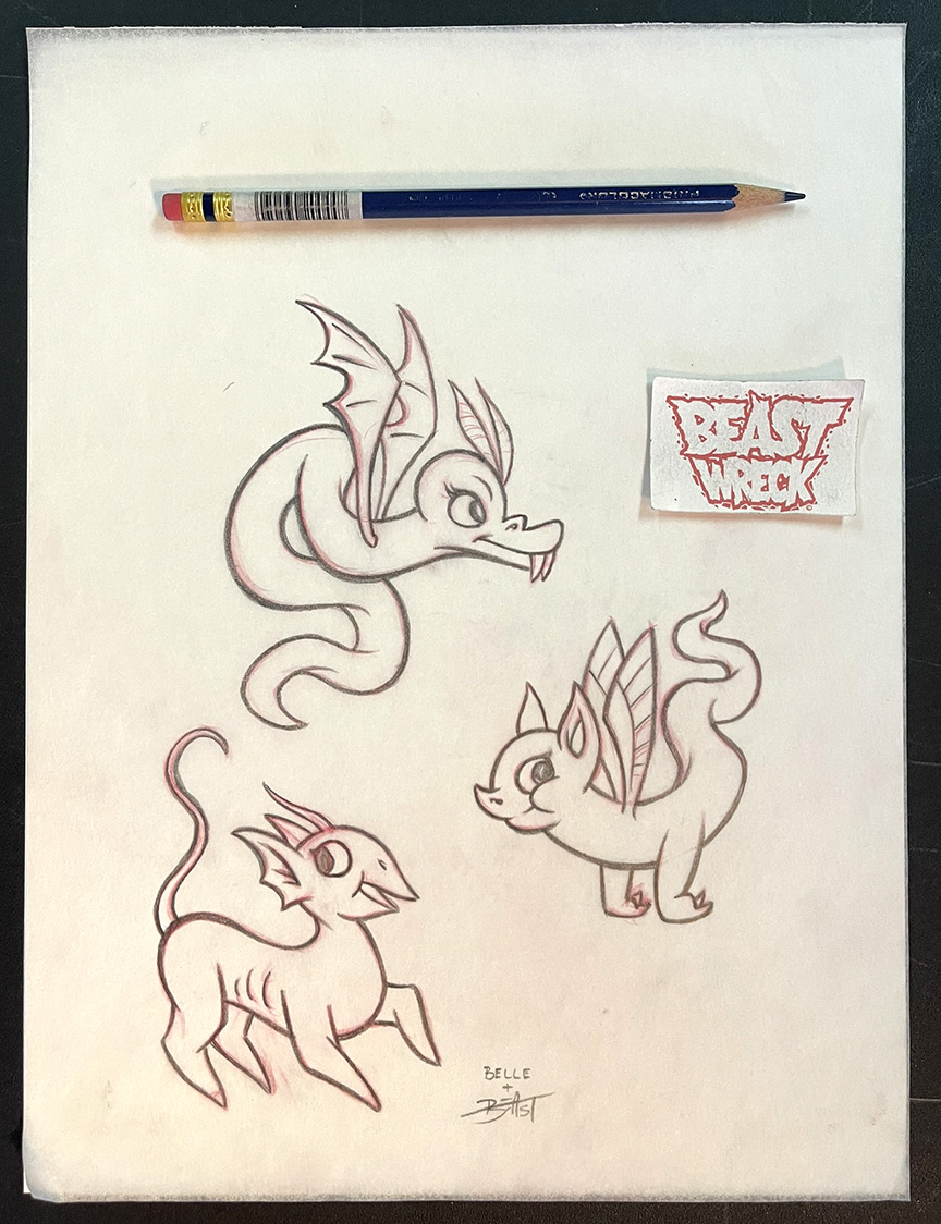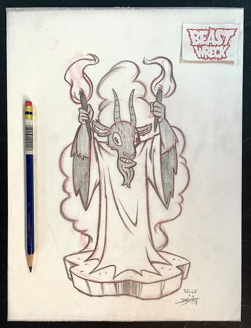 Original pencil drawings for a set of BeastWreck WALPURGISNACHT Sticker designs from 2022.