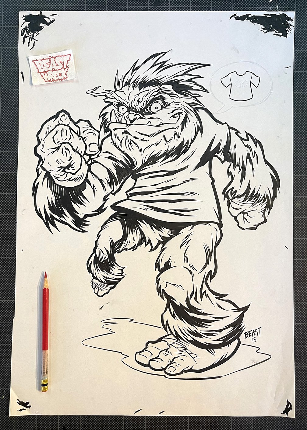 Original ink artwork by BeastBoy! An illustration for a mascot design for the YEHTEE T-shirt website.
