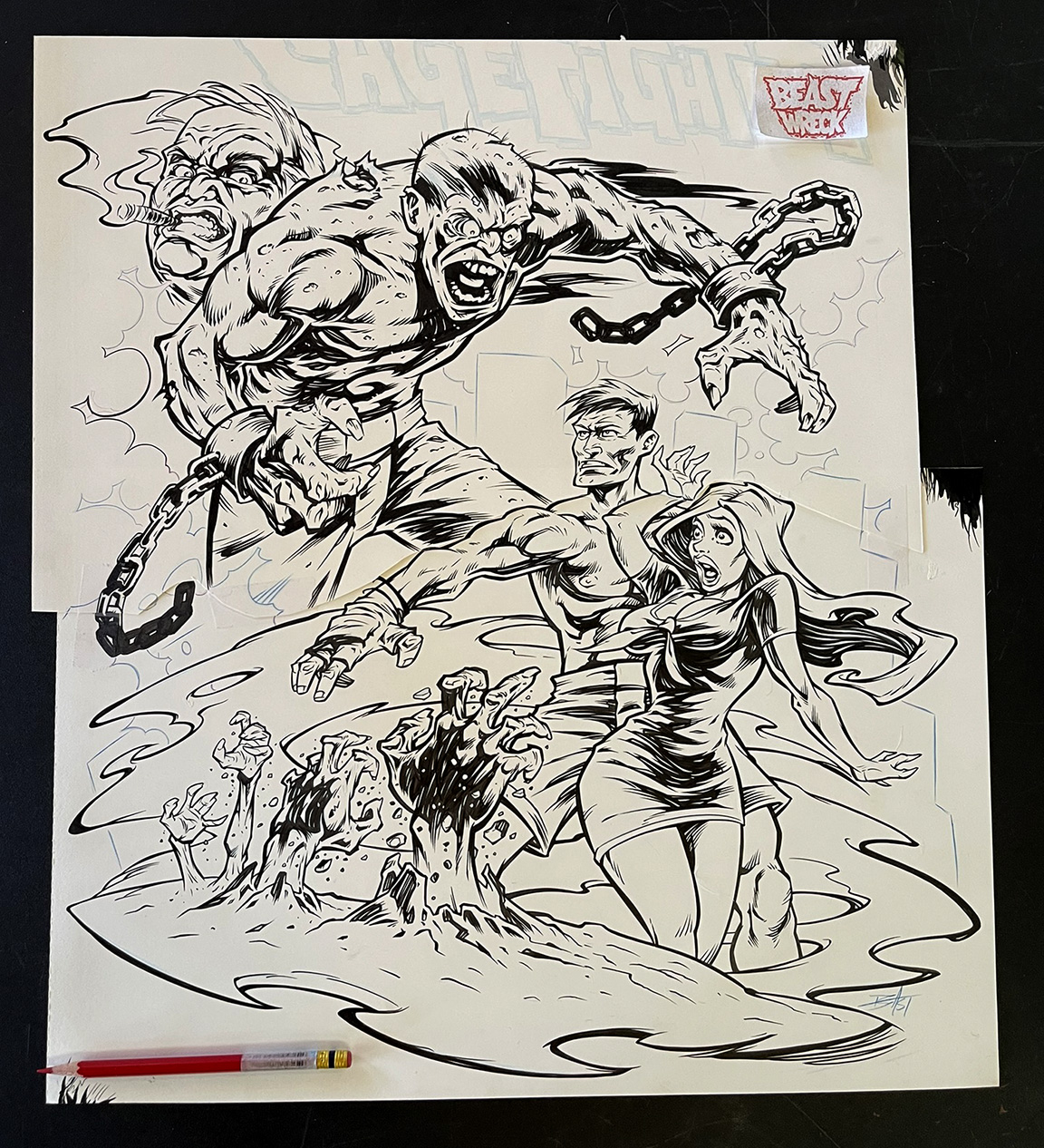 ZOMBIE CAGE FIGHTER Comic Cover ink artwork