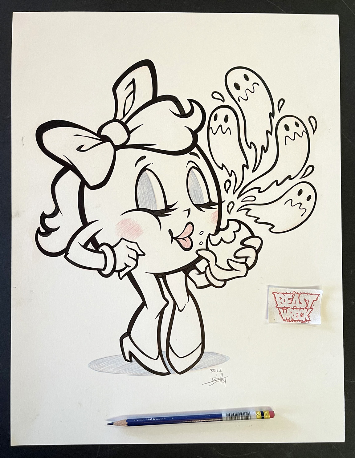 Original ink drawing of the LADY PAC-MAN illustration by Belle Dee andBeastBoy.